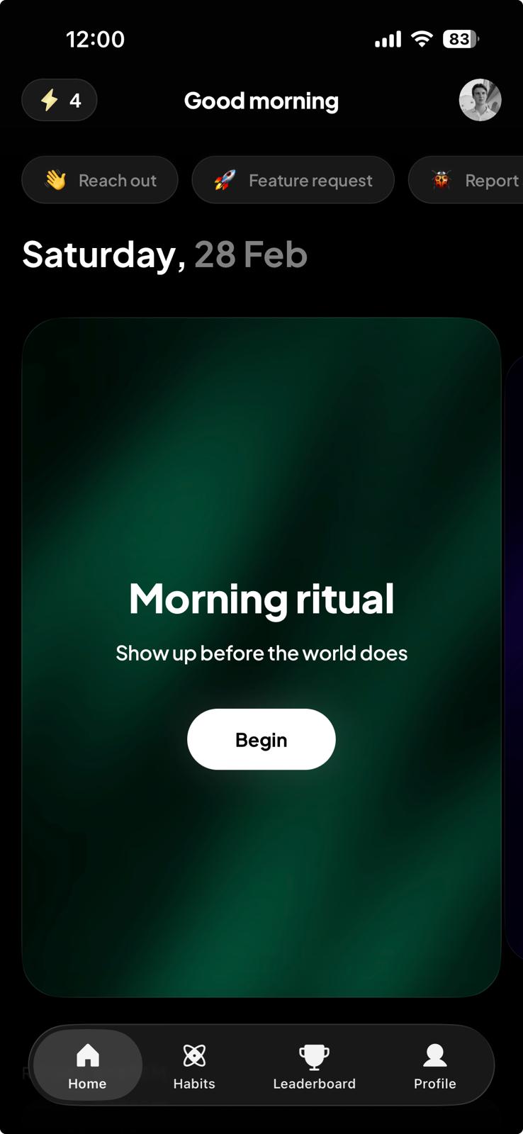 Your streak grows, your rituals get completed, and your progress is tracked. You see that you are actually following through.